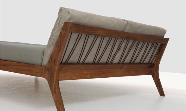 Leicht, mühelos, bequem und ungezwungen – das sind die Attribute, die diesem Bett seinen Namen geben. Schlanke Materialstärken, feine Linien, ein zierlicher Rahmen und weiche Polstermaterialien zeichnen dieses Bett aus. Eine Raffinesse, die sich nicht in den Vordergrund spielt, die aber den Charakter zusätzlich prägt, ist die Schnürung mit Kernlederriemen im Rückenteil. Sie gibt den weichen Rückenkissen den nötigen Halt.